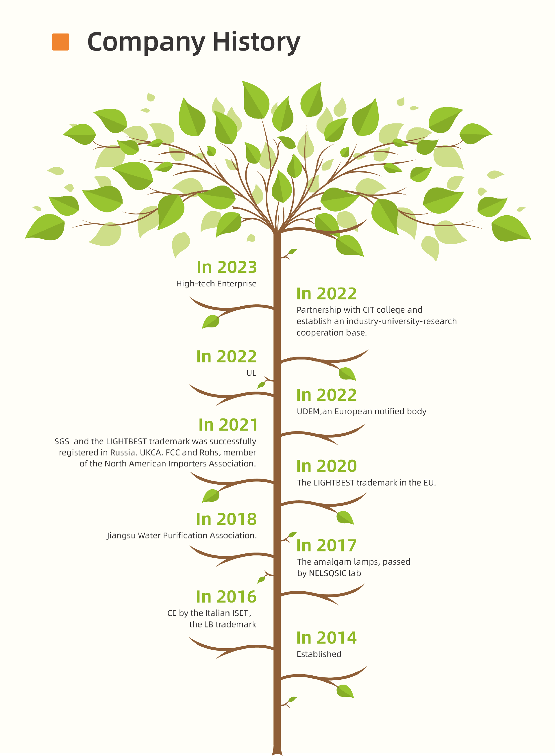 Lightbestconcentre-se na fabricação, pesquisa e desenvolvimento e vendas de lâmpadas germicidas uvc e produtos relacionados. Os produtos Lightbest são amplamente utilizados no tratamento de purificação de água, fotólise UV, tratamento de gases residuais, tratamento de esgoto, equipamentos de desinfecção, aparelhos de saúde inteligentes, etc. Somos especializados em lâmpadas germicidas UV, esterilizadores de água UV, reatores eletrônicos, tubos de vidro de quartzo, lâmpadas UV submersíveis e soquetes de lâmpadas, etc. e aderimos ao princípio de lutar, defender, compartilhar e ganhar-ganhar juntos. Temos sido um fornecedor estável de produtos de alta qualidade, serviço perfeito, operação profissional e preços competitivos na China e no mundo.