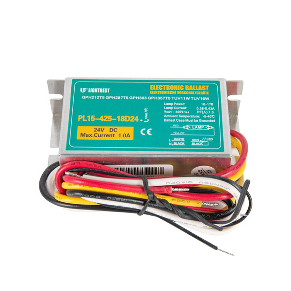 | PL15-180-10D24 | 0,48A@24V | 5,7-11,5 | 85*43*27 | 0,16-0,18 | 4-11 | GPH135T5/4W, GPH212T5/6W, GPH287T5/8W, GPL5W, GPL7W, GPL9W, GPL11W TUV4W, TUV6W, TUV8W, TUV10WT8, LTC4T5, LTC6T5, LTC8T5 |