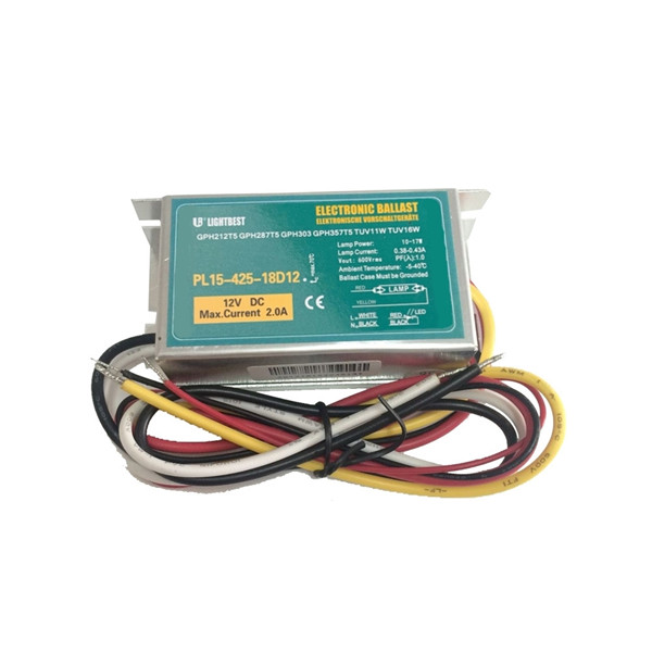 | PH12-425-18A | 0,31A@120V | 12-21 | 80*40*22 | 0,36-0,42 | 10-17 | GPH212T5/10W, GPH287T5/14W, GPH357T5, G15T8 TUV11W, TUV16W, TUV15WT8, LTC11T5, LTC16T5 |